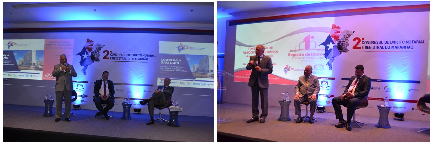 Conforme divulgado anteriormente, foi realizado nos dias 10 e 11 de fevereiro, em São Luiz/MA, o 2° Congresso de Direito Notarial e Registral do Maranhão, promovido pela Associação dos Notários e Registradores do Estado do Maranhão (ANOREG/MA). O Vice-Presidente do Instituto de Registro Imobiliário do Brasil (IRIB), José de Arimatéia Barbosa, apresentou a palestra intitulada “Tokenização de Negócios Imobiliários” com o Ex-Presidente do IRIB e Presidente da Associação dos Notários e Registradores do Estado do Rio Grande do Sul (ANOREG/RS), João Pedro Lamana Paiva. Já o 2º Tesoureiro do IRIB, André Villaverde de Araújo falou sobre gestão, liderança e inteligência emocional para profissionais dos Cartórios.