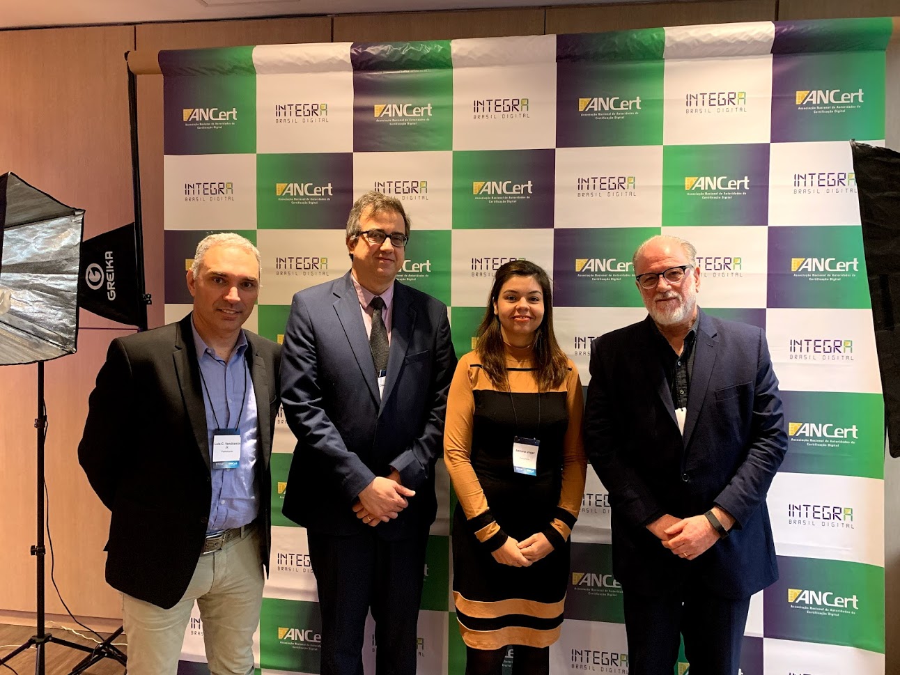 “A ANCert representa a ponta final da cadeia de confiança da ICP-Brasil, ou seja, quem de fato realiza a identificação dos titulares de certificados digitais e distribui os certificados emitidos pelas Autoridades Certificadoras”, disse o presidente Renan Sousa apresentando a associação aos convidados, antes de dar início à programação do dia.