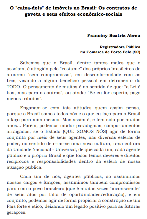 Artigo de autoria de Franciny Beatriz Abreu trata da questão dos “contratos de gaveta”, prática que retira o imóvel do mercado formal e...