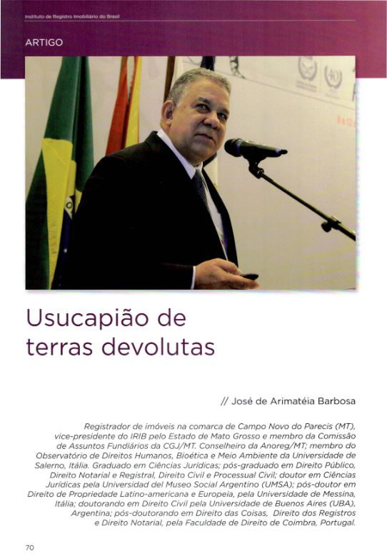 Artigo de autoria de José de Arimatéia Barbosa é decorrente de palestra apresentada no XLI Encontro dos Oficiais de Registro de Imóveis...