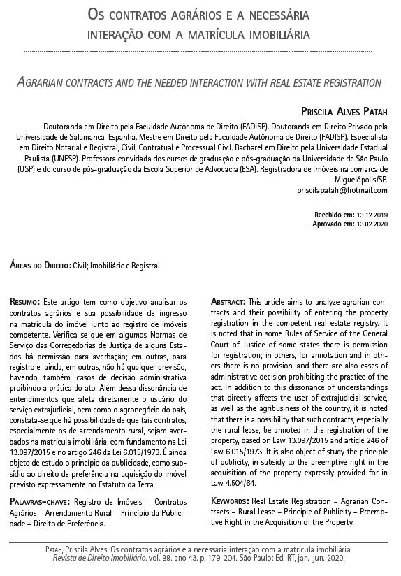 Os contratos agrários e a necessária interação com a matrícula imobiliária