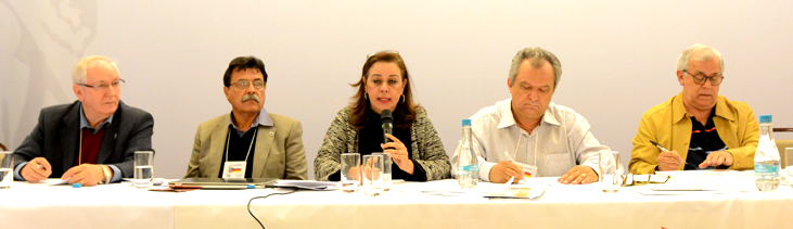 Os registradores de imóveis Sérgio Busso, Seneval Veloso da Silva, Natal Cicote e Maria do Carmo de Rezende participaram do debate