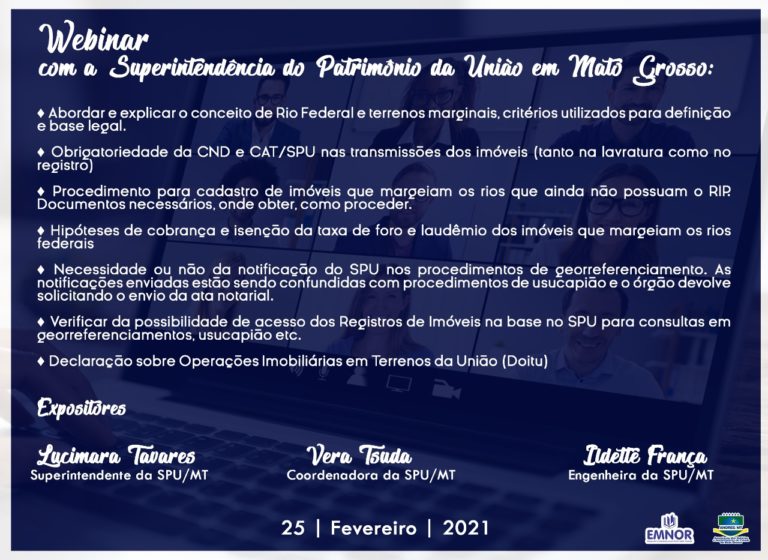 Webinar: ANOREG/MT, EMNOR e SPU/MT