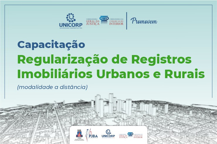 Corregedorias do PJBA e UNICORP promovem capacitação sobre regularização de registros imobiliários urbanos e rurais; inscrições até 26/04