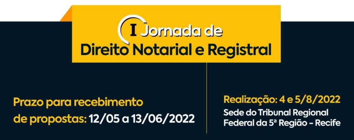 O Conselho da Justiça Federal (CJF), o Tribunal Regional Federal da 5ª Região (TRF5) e a Escola de Magistratura da 5ª Região (ESMAFE 5ª) promoverão, nos dias 4 e 5 de agosto, a partir das 18h e das 9h, respectivamente, a “I Jornada de Direito Notarial e Registral”, com o objetivo de “promover condições ao delineamento de posições interpretativas sobre o Direito Notarial e Registral contemporâneo, adequando-as às inovações legislativas, doutrinárias e jurisprudenciais, a partir de debates entre especialistas e professores, conferindo segurança jurídica em sua aplicação.” A Jornada será realizada em formato presencial e os interessados em enviar propostas de Emendas poderão fazê-lo até o dia 13 de junho, mediante preenchimento de formulário próprio.