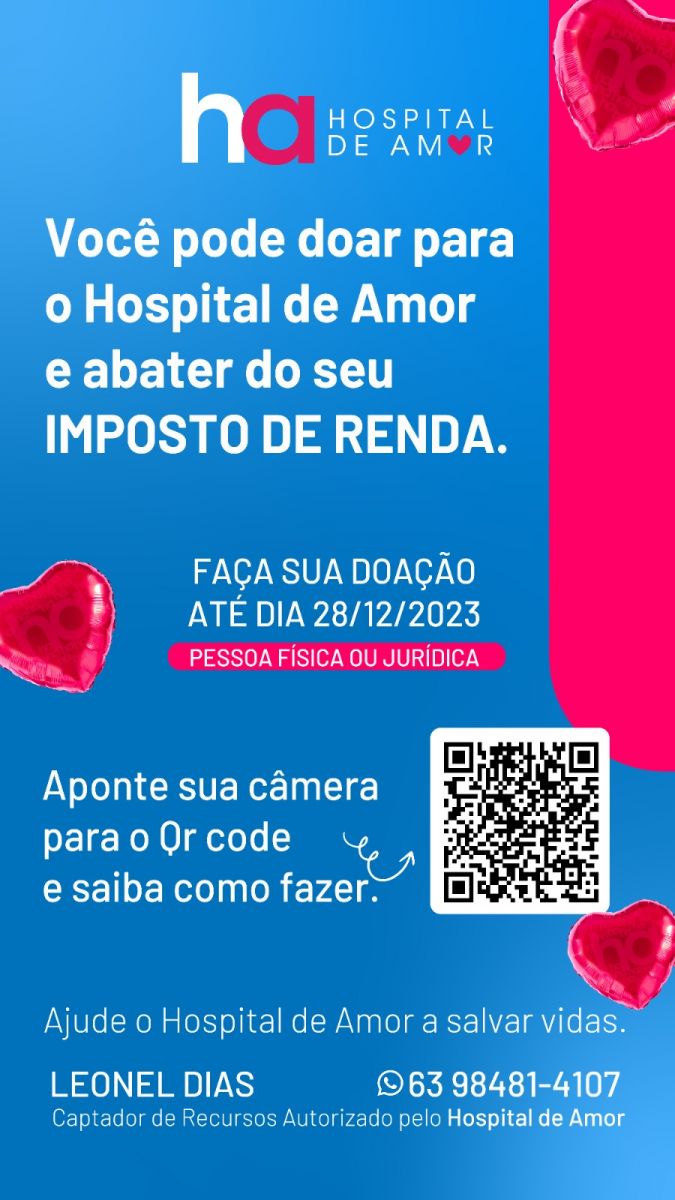 O Instituto de Registro Imobiliário do Brasil (IRIB), representado por seu Presidente e Vice-Presidente, respectivamente, Jordan Fabrício Martins e José de Arimatéia Barbosa, CONVIDA todos os Tabeliães e Registradores a doarem recursos para o Hospital de Amor. As doações podem ser realizadas por pessoas físicas ou jurídicas até 28/12/2023 e abatidas do Imposto de Renda. O Hospital de Amor é uma entidade voltada à prevenção e tratamento do câncer. Os recursos doados são essenciais para que a instituição possa continuar sua busca por excelência tecnológica aliada à humanização no tratamento de câncer, atendendo, gratuitamente, os pacientes de todos os estados do Brasil.