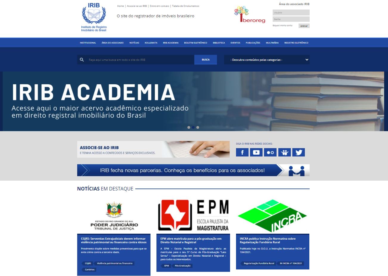 O Instituto de Registro Imobiliário do Brasil (IRIB) nasceu em 1974 e é a principal entidade de representação institucional e política dos Oficiais de Registro de Imóveis do Brasil.
