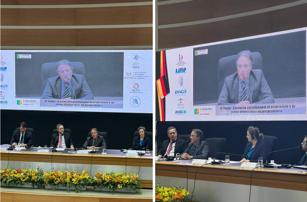 O Presidente do IRIB integrou a Mesa relativa ao 6º Painel, intitulada “A proteção constitucional da propriedade e de outros direitos reais na jurisprudência”. Já o Coordenador da RDI, participa como Debatedor dos Painéis “Temas selecionados sobre contratos imobiliários e sua escrituração no Brasil e na Alemanha” e “Questões selecionadas sobre condomínios, loteamento, multipropriedade e registro no Brasil e na Alemanha”.