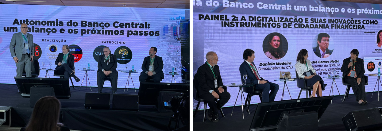 A revista eletrônica Consultor Jurídico, em parceria com o portal Brasil 247, a TV 247 e o Grupo Prerrogativas, promoveu na manhã de hoje, 04/09/2024, em Brasília/DF, o evento “Autonomia do Banco Central: um balanço e os próximos passos”. O objetivo foi debater a Proposta de Emenda à Constituição n. 65/2023 (PEC), que, em síntese, amplia atribuições do Banco Central do Brasil (BACEN) incluindo algumas exercidas por Notários e Registradores. O evento teve como um dos palestrantes o Presidente da Associação dos Notários e Registradores do Brasil (ANOREG/BR) e da Confederação Nacional de Notários e Registradores (CNR), Rogério Portugal Bacellar, e contou com a presença do Presidente do Instituto de Registro Imobiliário do Brasil (IRIB), Jordan Fabrício Martins.