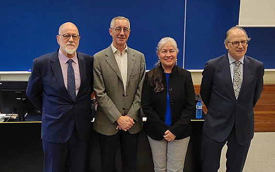 Sérgio Jacomino, IRIB; Carlos Gomez Ligüerre, (Fundação Alexander von Humboldt de Hamburgo e chefe de Departamento da Faculdade de direito da UPF); Lavínia Figueroa (Escola de Registradores da Guatemala) e Nicolás Nogueroles (registrador e professor da UPF).