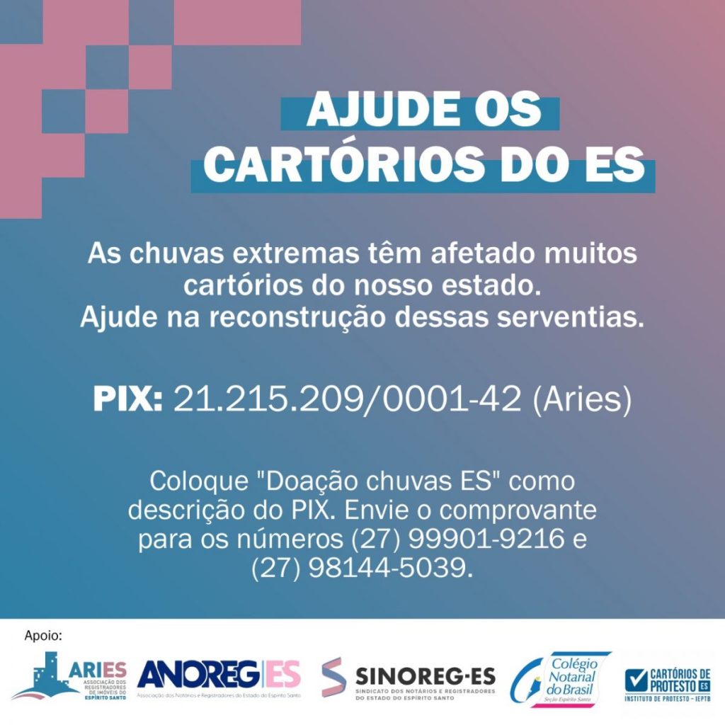 Entidades capixabas ligadas aos Serviços Notariais e Registrais se unem para arrecadar doações.