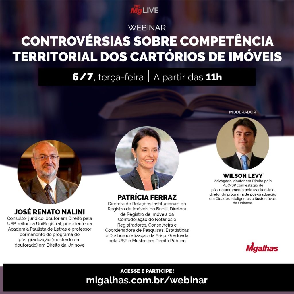 Migalhas realizará webinar com José Renato Nalini, Patrícia Ferraz e Wilson Levy.