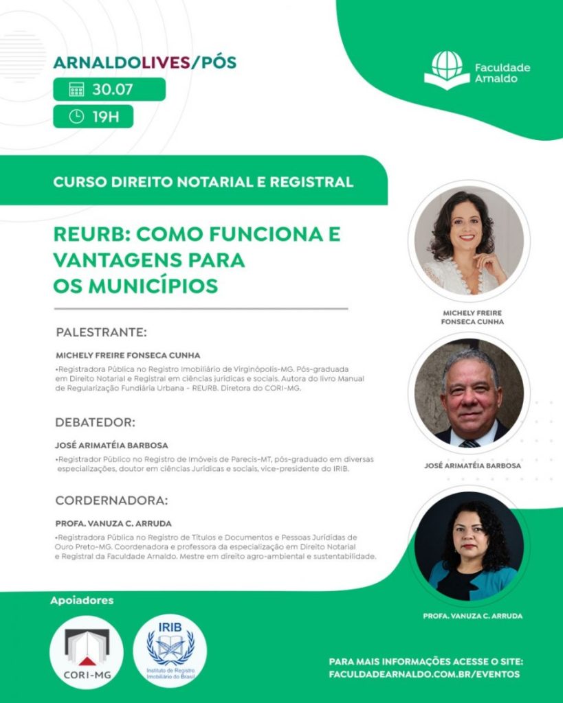 Vice-Presidente do IRIB discutirá aspectos da Reurb em live promovida pela Faculdade Arnaldo.