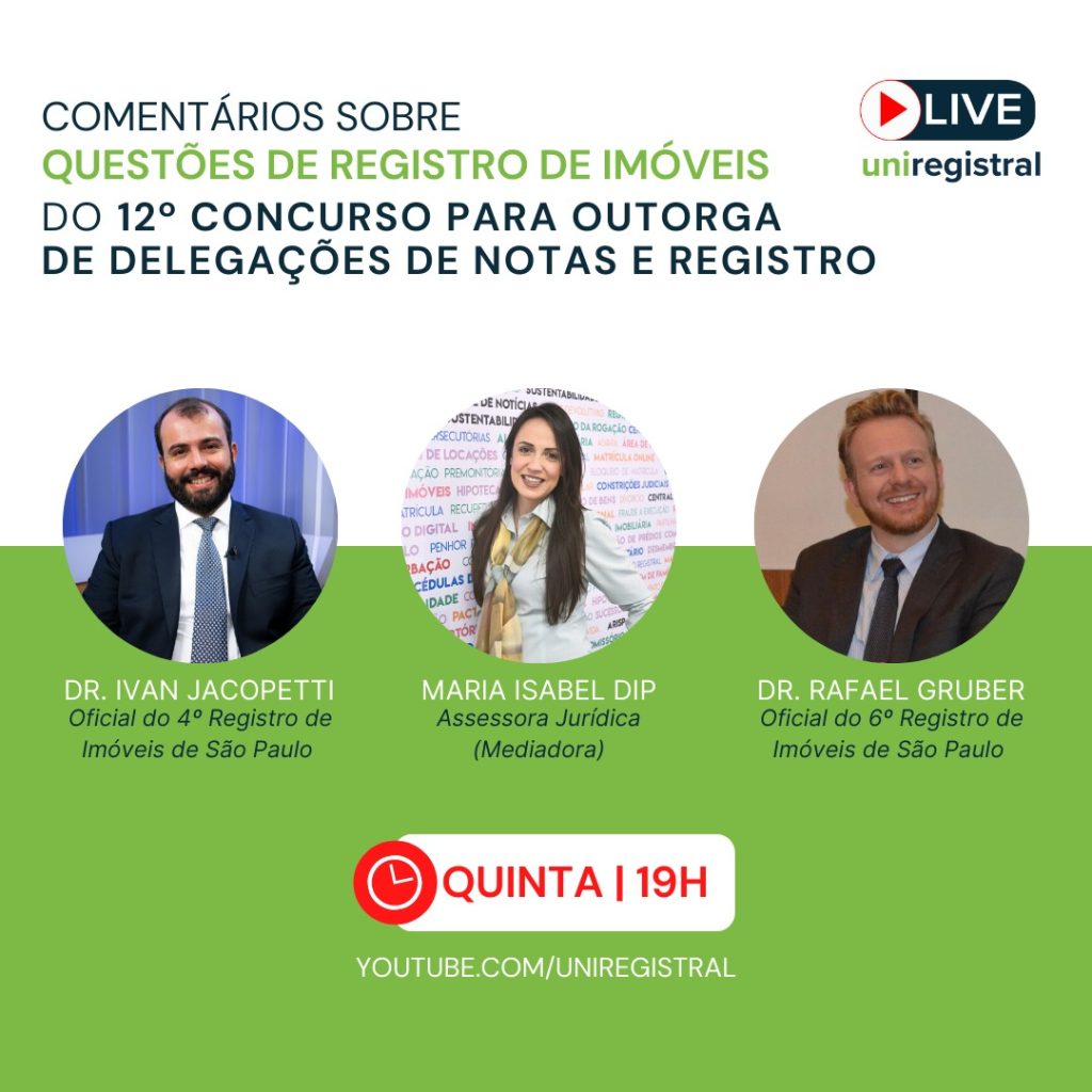 UNIREGISTRAL promoverá live sobre as questões de RI da primeira fase do 12º Concurso de Notas e Registro de São Paulo