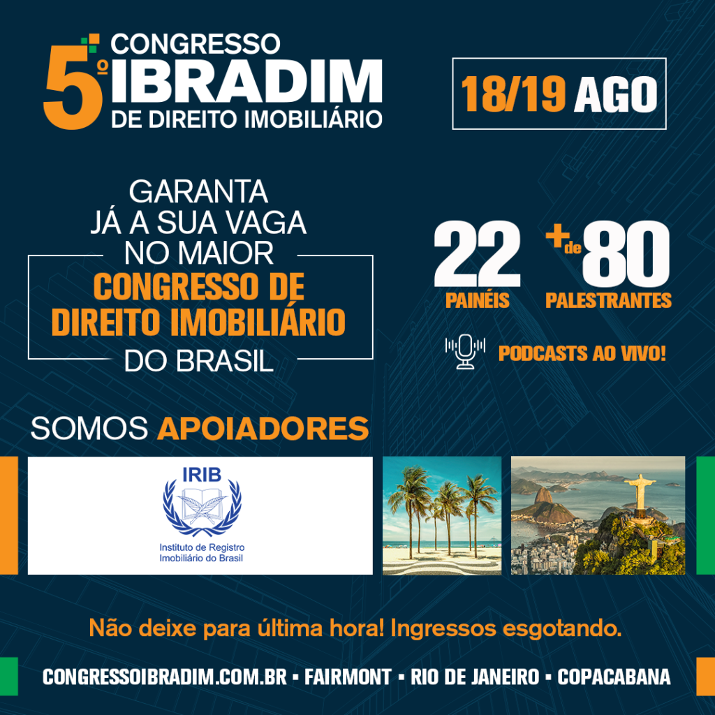 Evento será realizado entre os dias 18 e 19 de agosto de 2022 no Rio de Janeiro. Associados ao IRIB terão 10% de desconto!