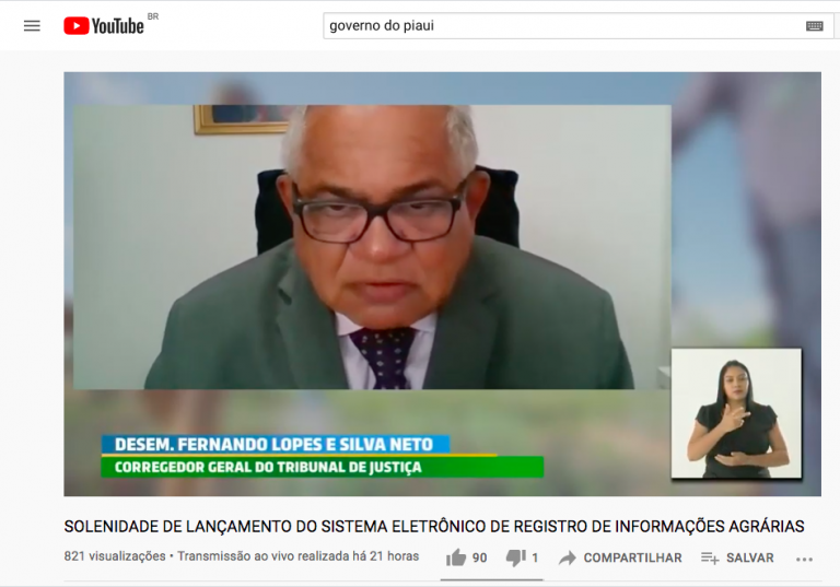 A Corregedoria Geral da Justiça do Estado do Piauí (CGJ-PI) e a Vice-Corregedoria da Justiça do Estado do Piauí participaram ontem, 28/06/2021, do lançamento do aplicativo Registro de Informações Agrárias (REGINA), desenvolvido pelo Governo Estadual, no âmbito do programa de modernização do Instituto de Terras do Piauí (INTERPI). O app permitirá o encaminhamento e a recepção de títulos para registro de forma digital, simples e rápida.