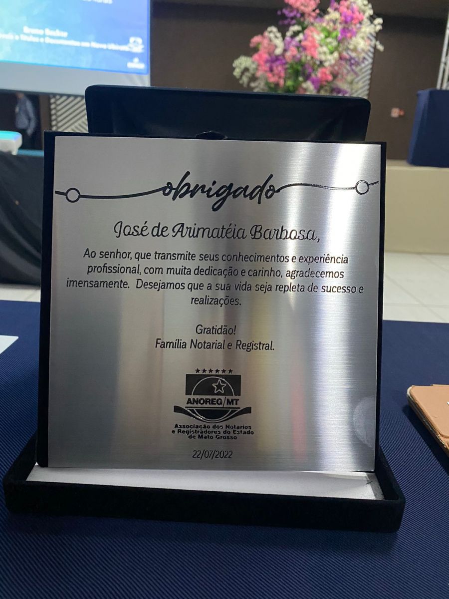 Conforme divulgado em edições anteriores do Boletim do IRIB, foi realizado, nos dias 22 e 23/07/2022, o “XX Encontro Estadual de Notários e Registradores do Estado de Mato Grosso”, promovido pela Associação dos Notários e Registradores do Estado de Mato Grosso (ANOREG/MT). O Registrador de Imóveis do 1º Ofício da Comarca de Campo Novo do Parecis/MT e Vice-Presidente do Instituto de Registro Imobiliário do Brasil (IRIB), José de Arimatéia Barbosa, foi um dos homenageados no encontro.