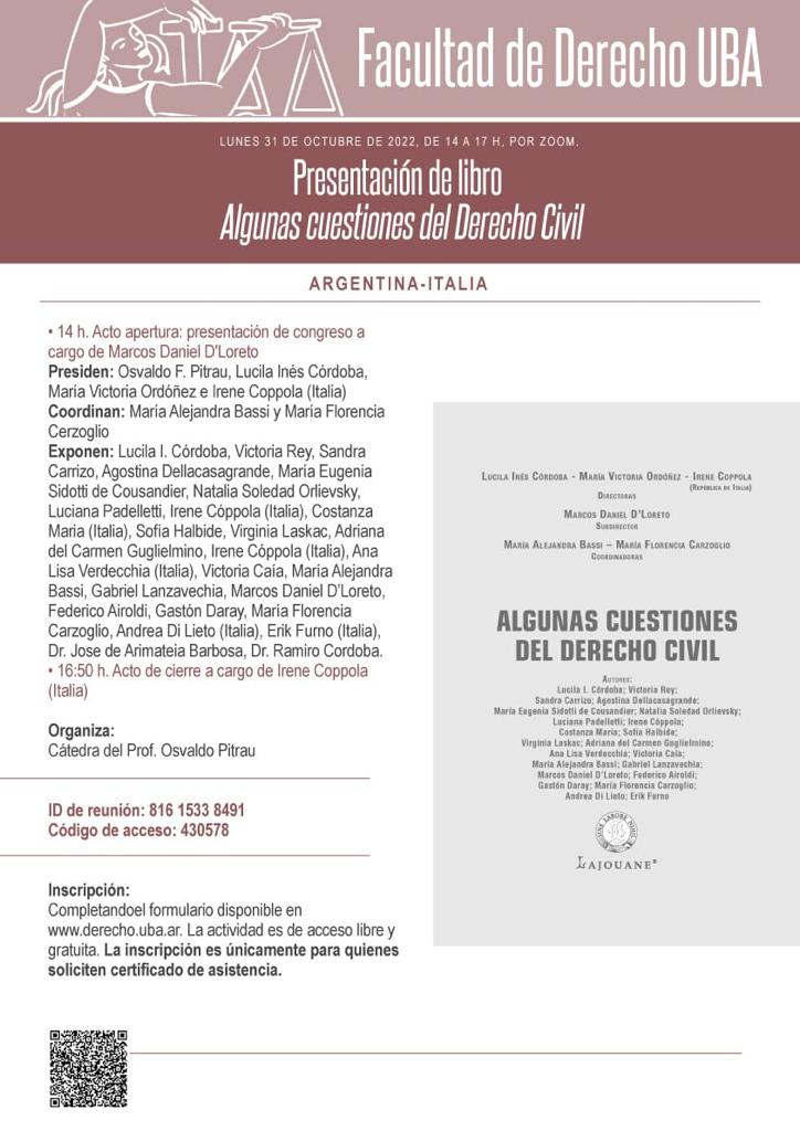 Lançamento do livro “Algunas Cuestiones del Derecho Civil” será realizado no dia 31 de outubro.