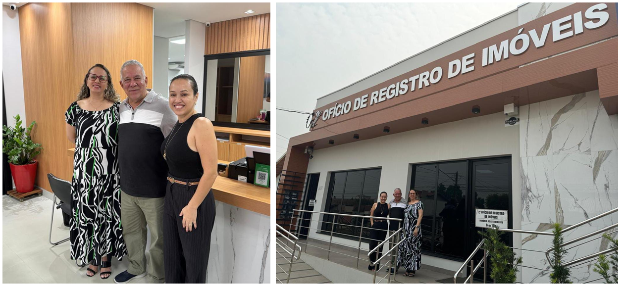 O Vice-Presidente do Instituto de Registro Imobiliário do Brasil (IRIB), José de Arimatéia Barbosa, visitou o 2º Ofício de Registro de Imóveis da comarca de Ji-Paraná/RO. Atualmente, a Serventia está sob a titularidade de Lucélia Pitombeira Barreto.