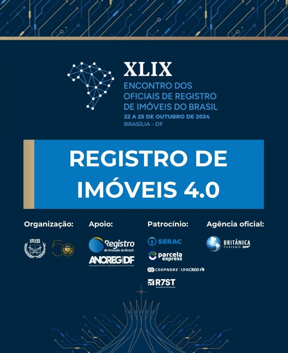 XLIX ENCONTRO DOS OFICIAIS DE REGISTRO DE IMÓVEIS DO BRASIL: EX-PRESIDENTE DO IRIB INTEGRARÁ PAINEL SOBRE REGISTRO DE IMÓVEIS 4.0